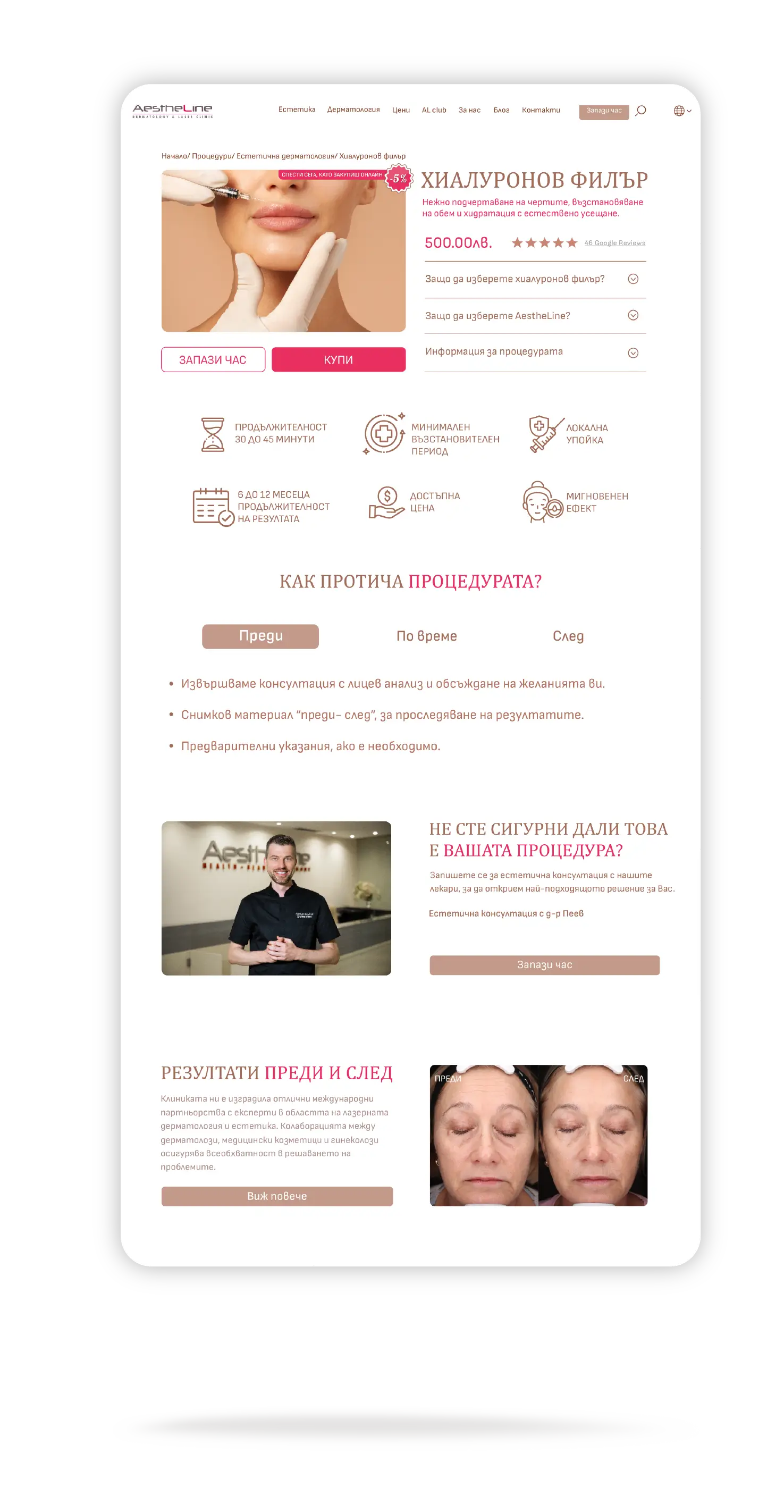 Създаване на визуална концепция, съобразена с бранда, потребителското изживяване и функционалността на уебсайта.